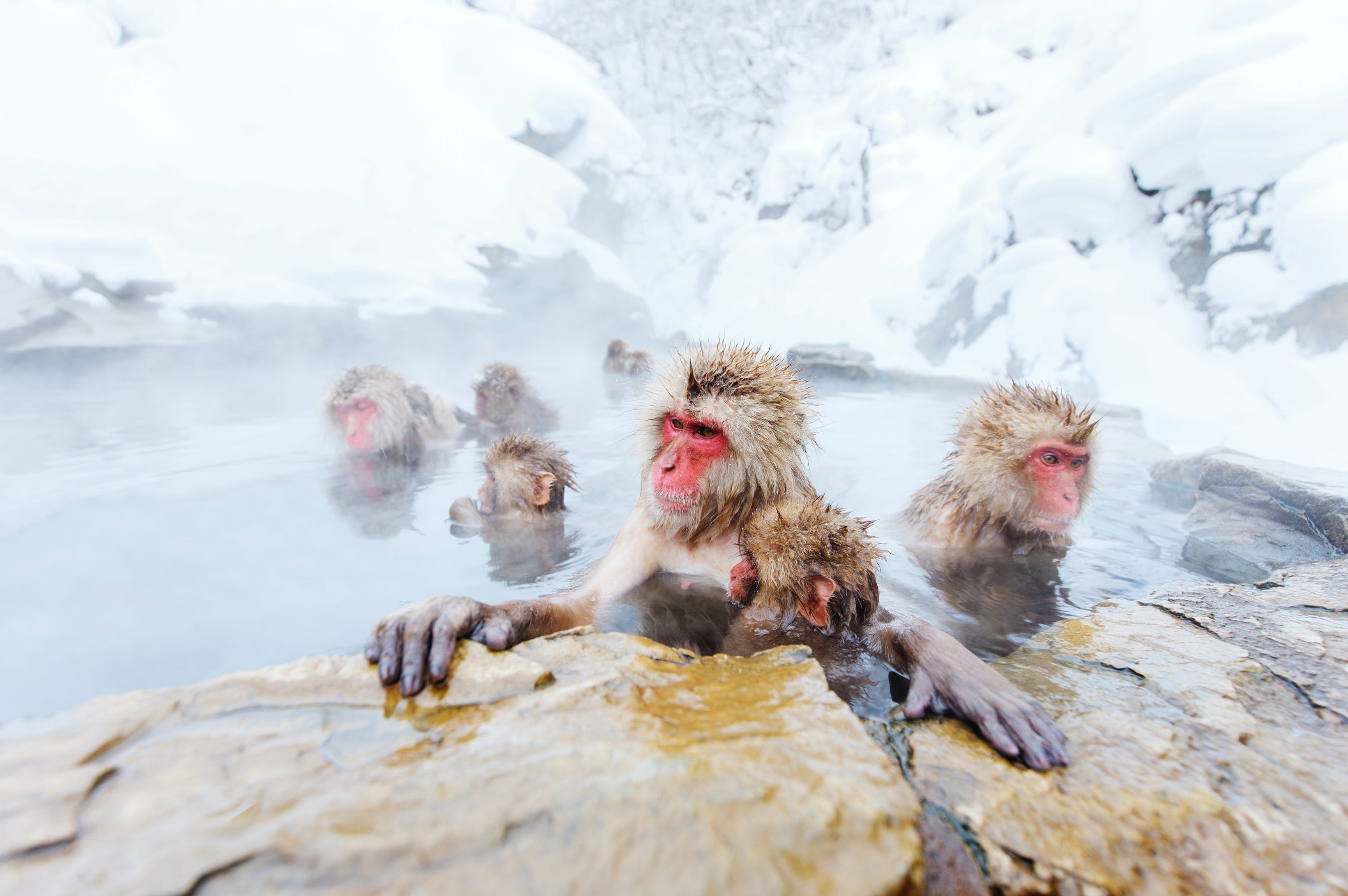 Snow monkeys in hot springs. Yes, actual wild monkeys hanging out in natural hot tubs, looking completely zen. It's peak adorable and peak weird at the same time — everything that makes travel worth it.